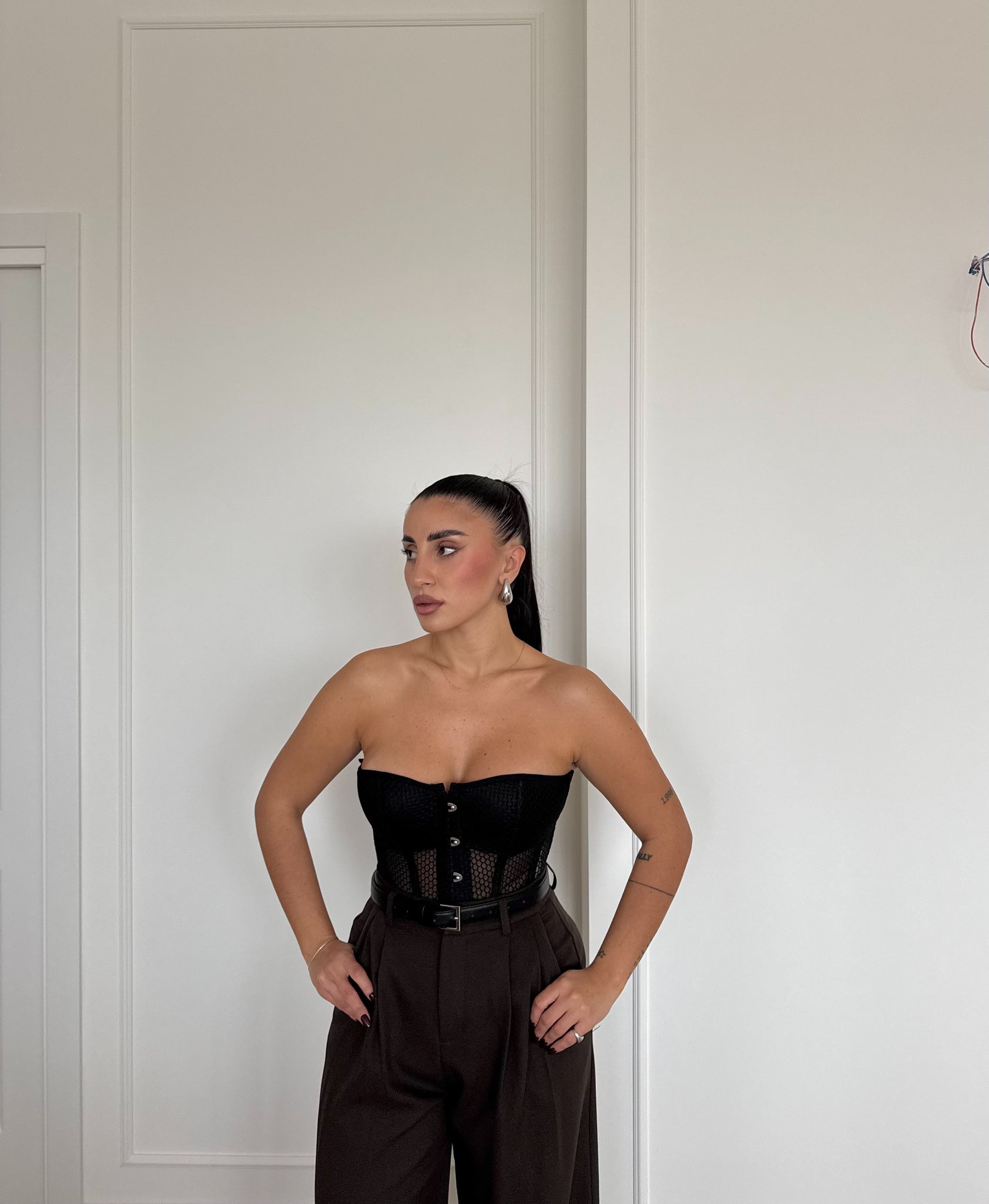 Bustier con chiusura con ganci anteriori e lacci posteriore. Composizione :