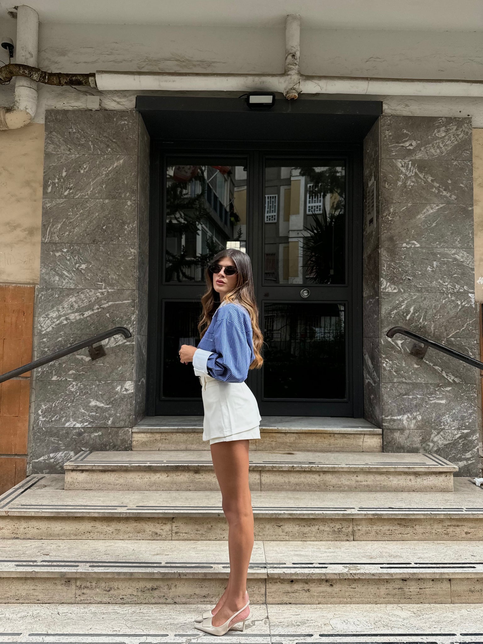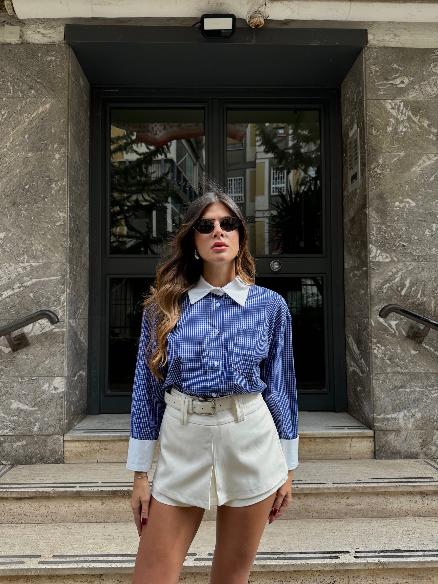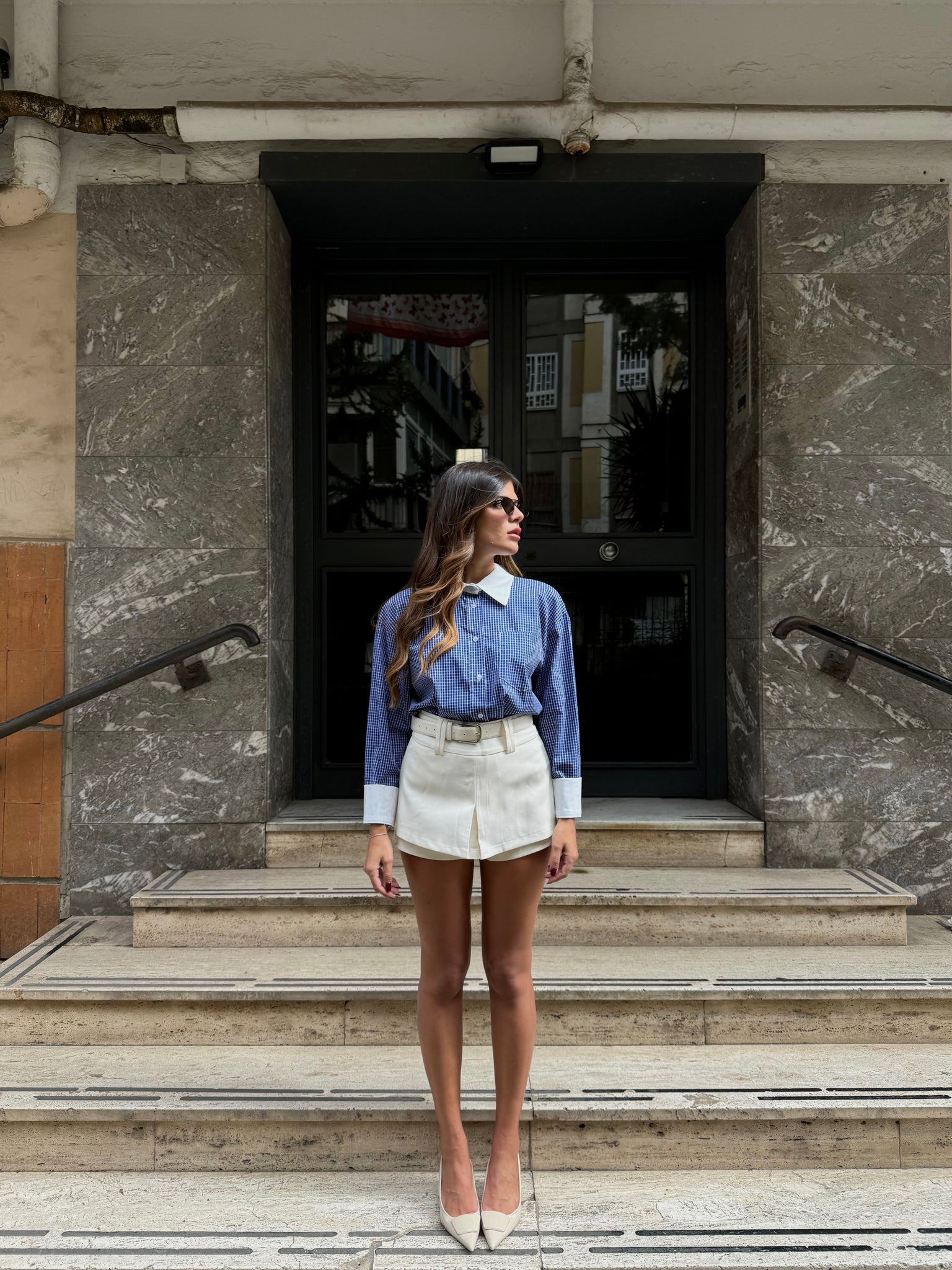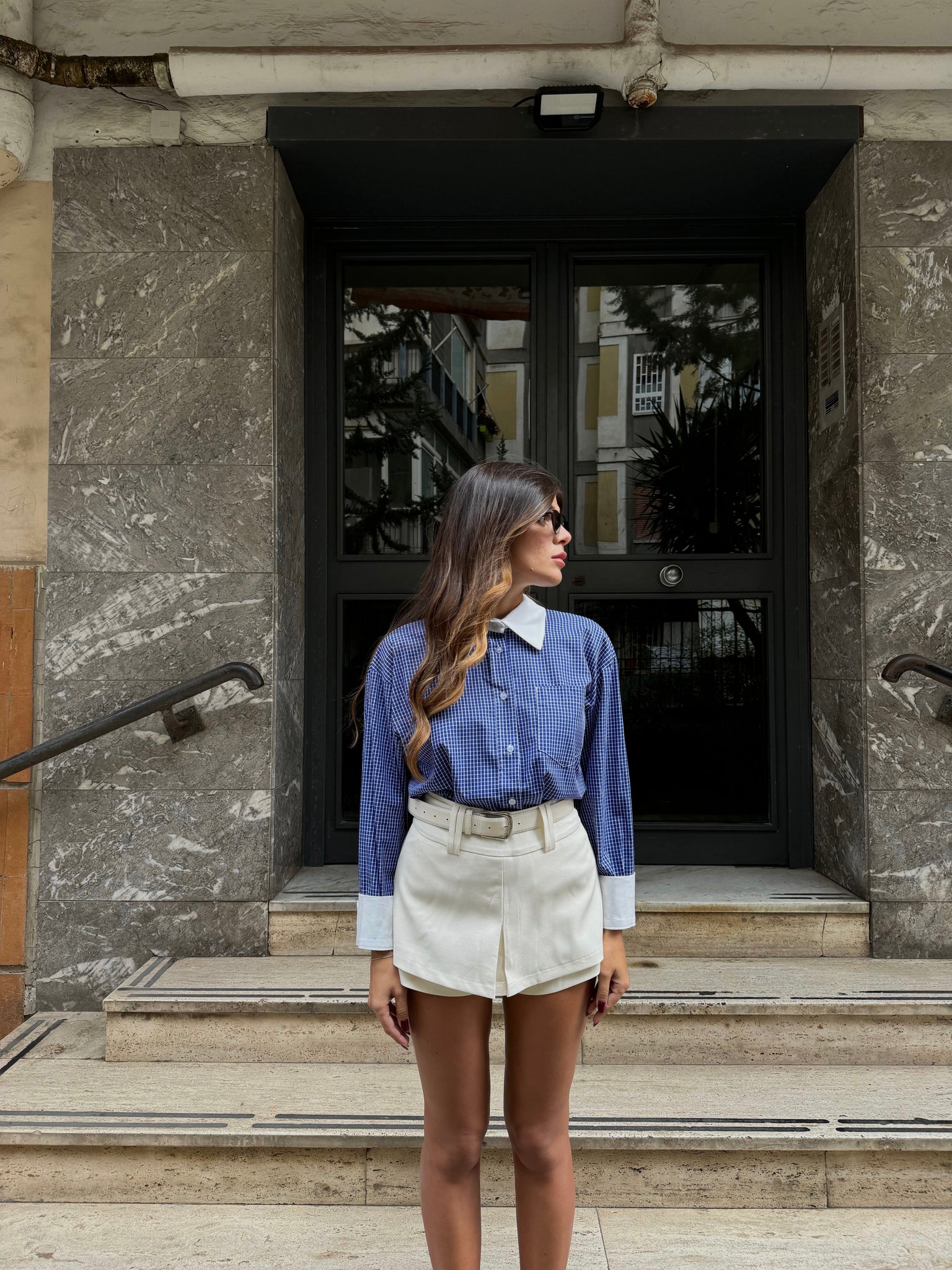 Pantagonna con cintura. Francesca è alta 1,68cm 95% poliestere 5% elastico.