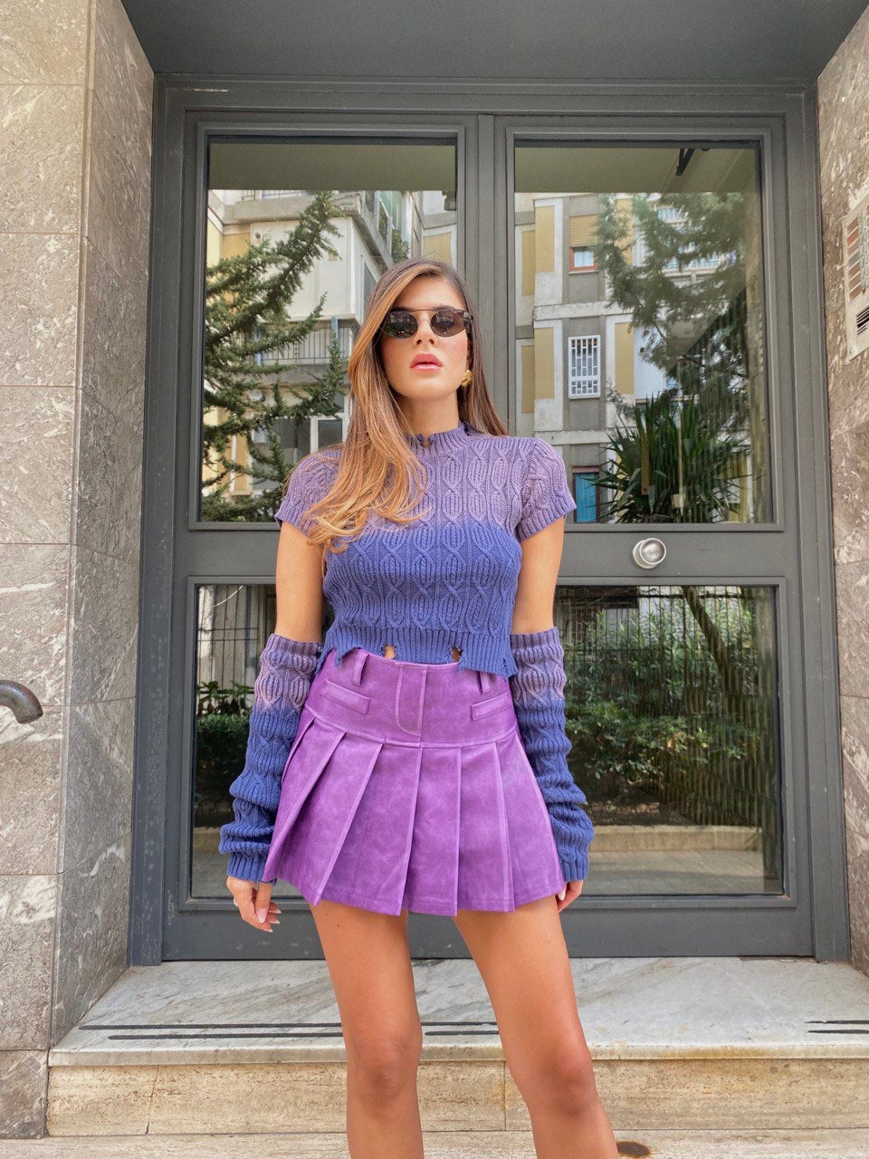 pantagonna con plisse effetto pelle