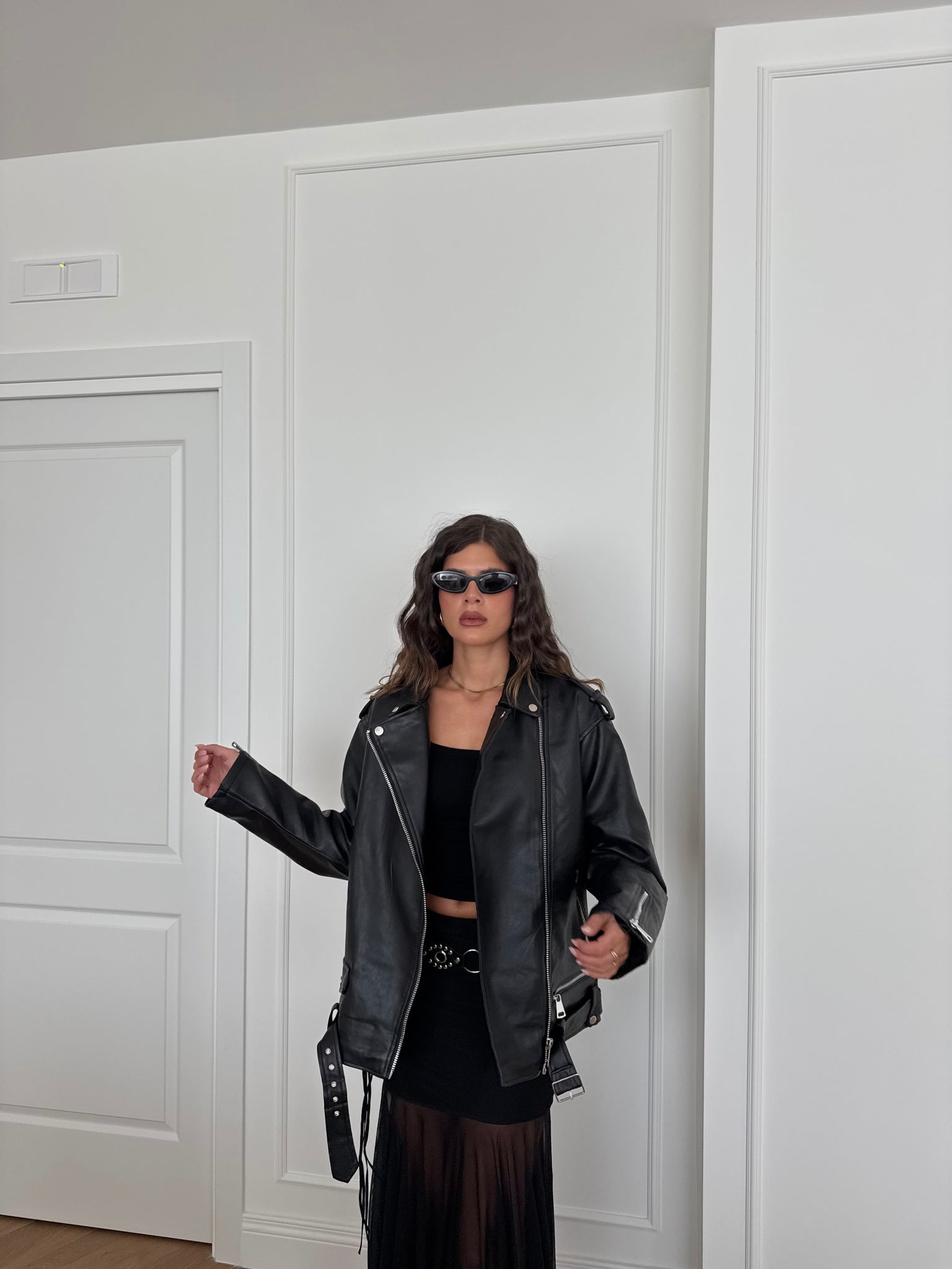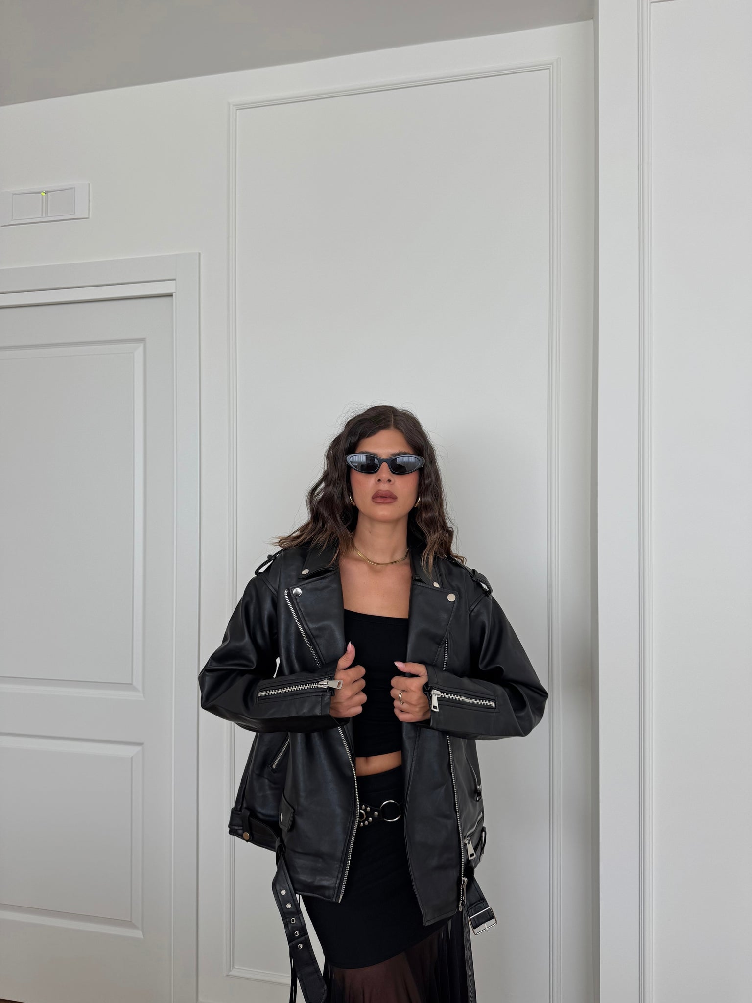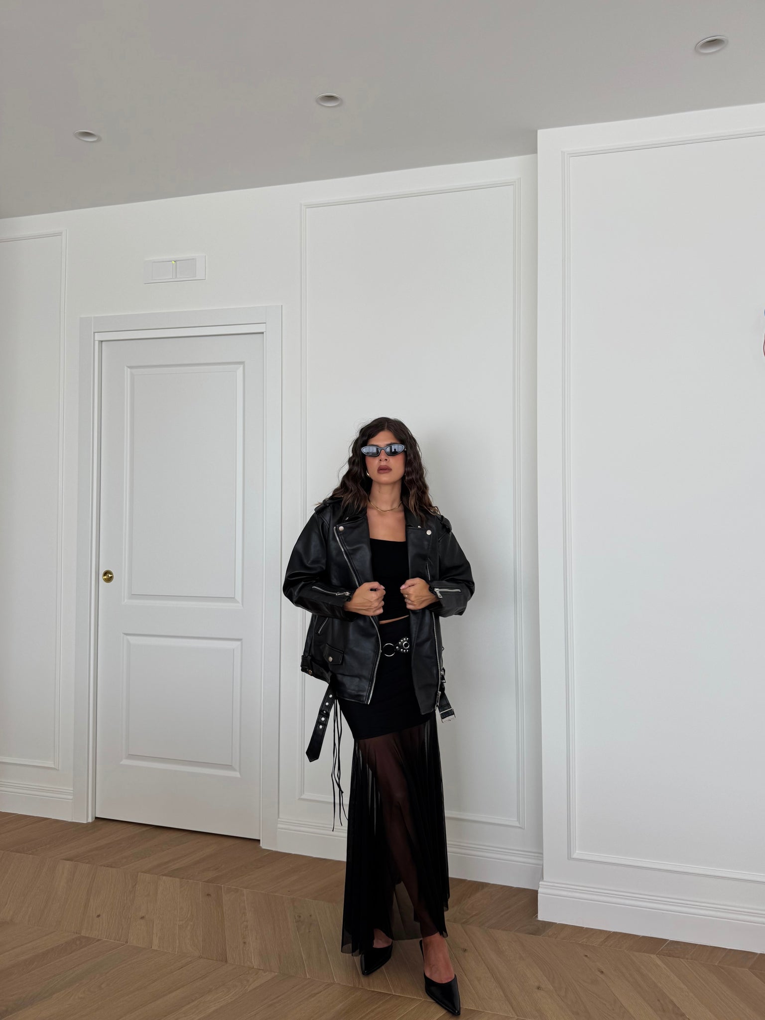 Giubbotto in similpelle over foderato. Francesca indossa tg S/M