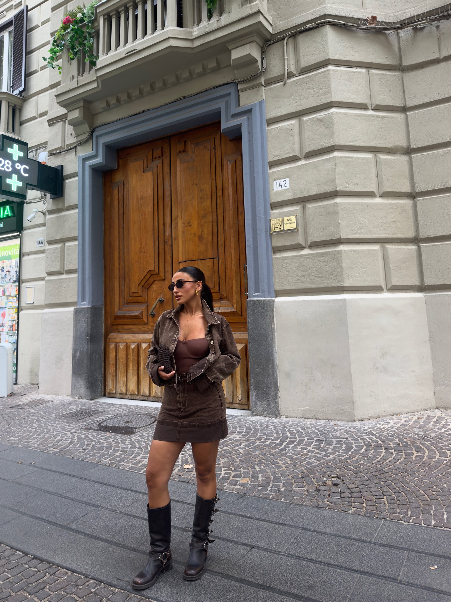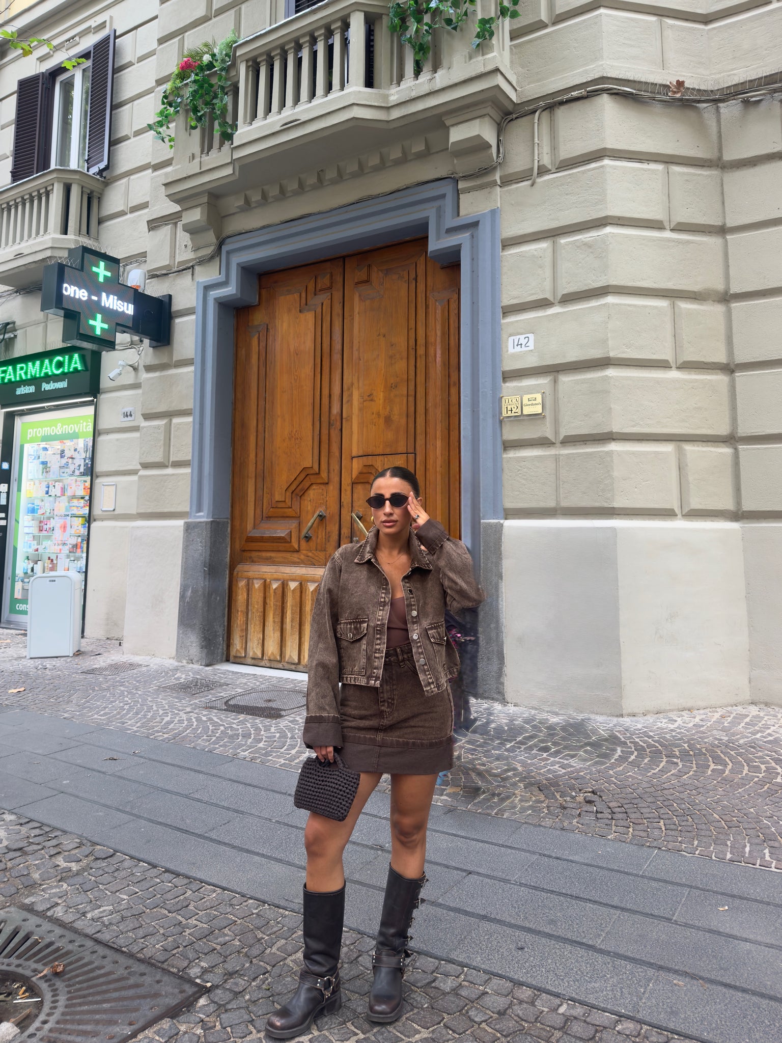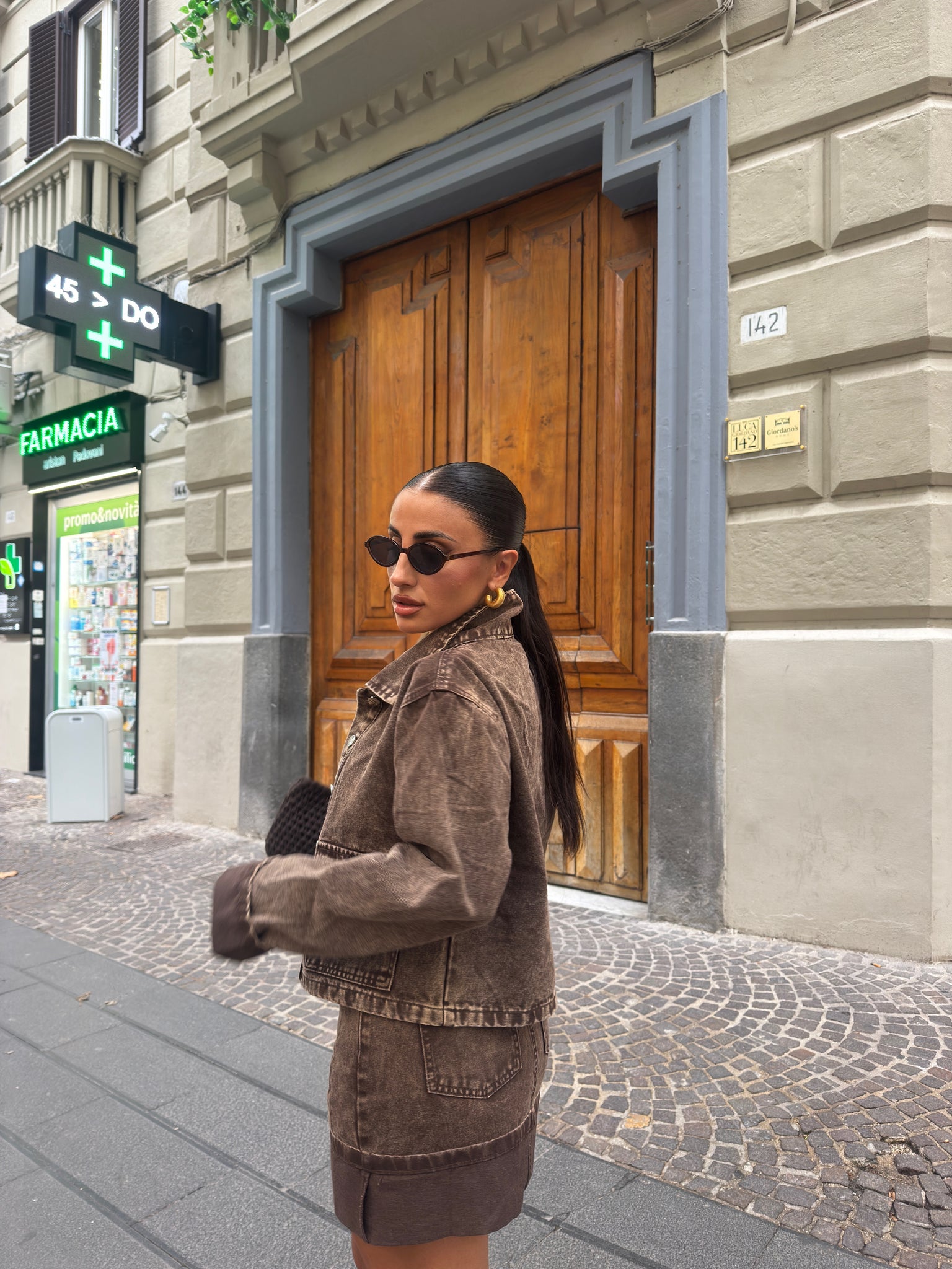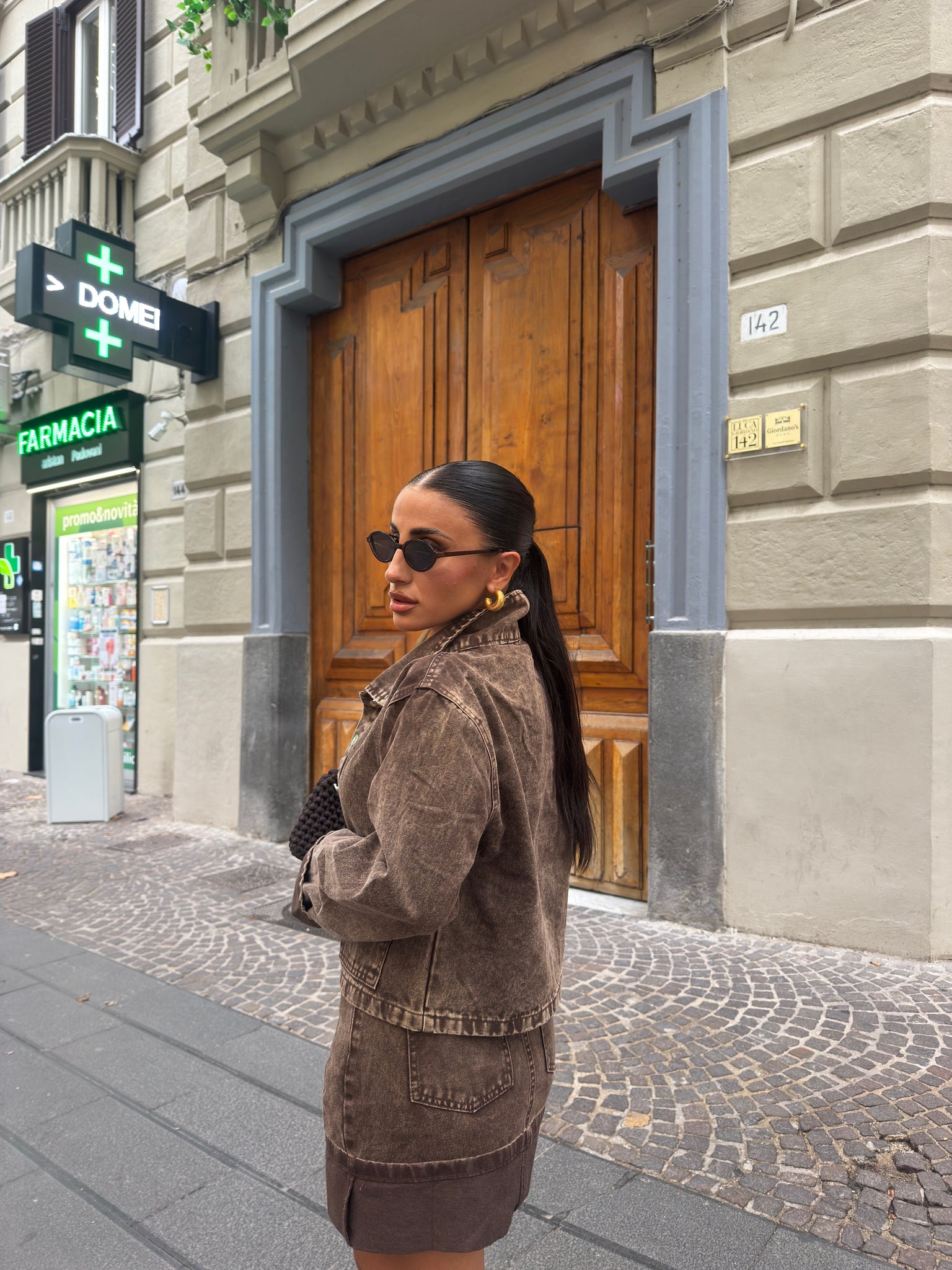 Giacca in denim. Martina è alta 1,57cm indossa tg S/M.