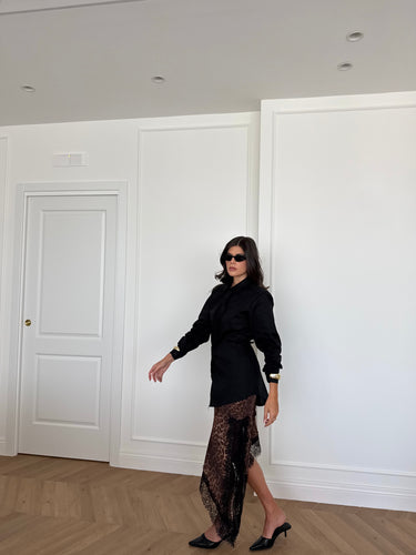 GONNA ASIMMETRICA ANIMALIER E PIZZO LUMINA