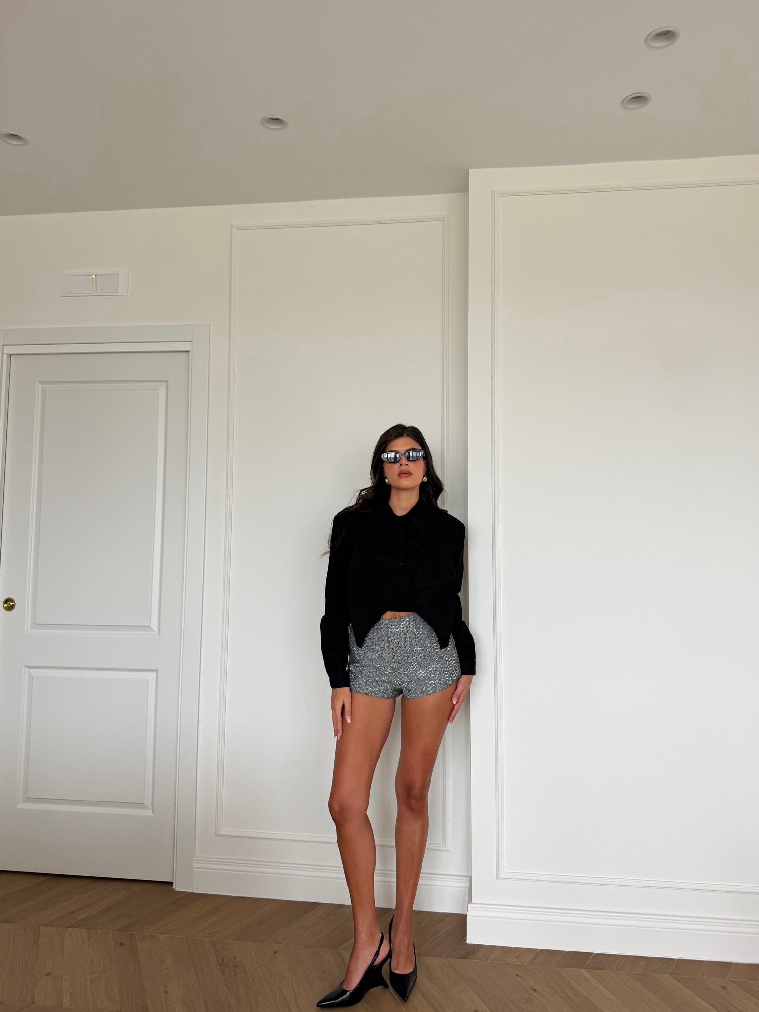 Maglia crop con fiocco con spalline. Chiusura con bottoni.
