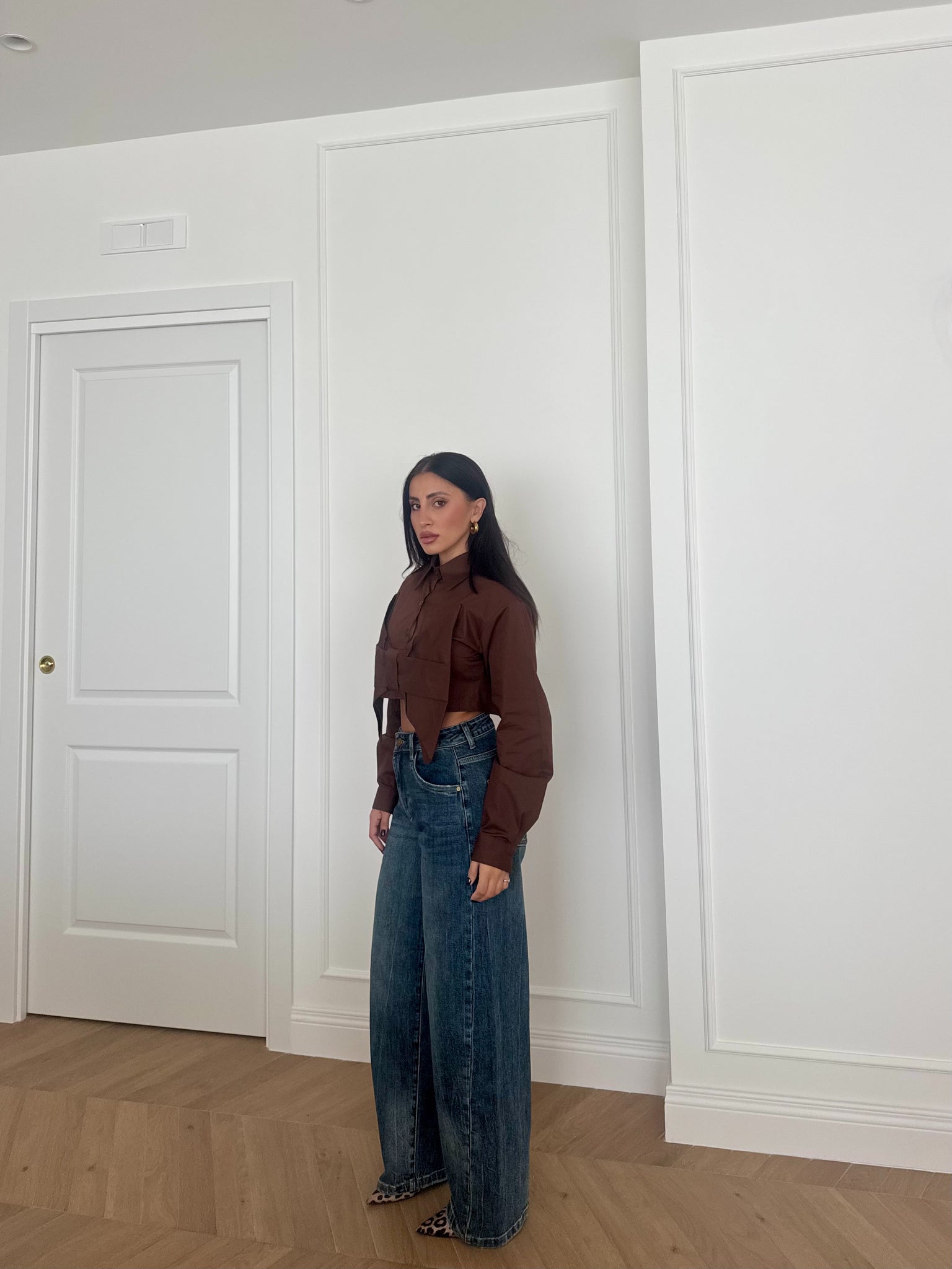 Jeans baggy. Martina è alta 1,57cm indossa tg M.
