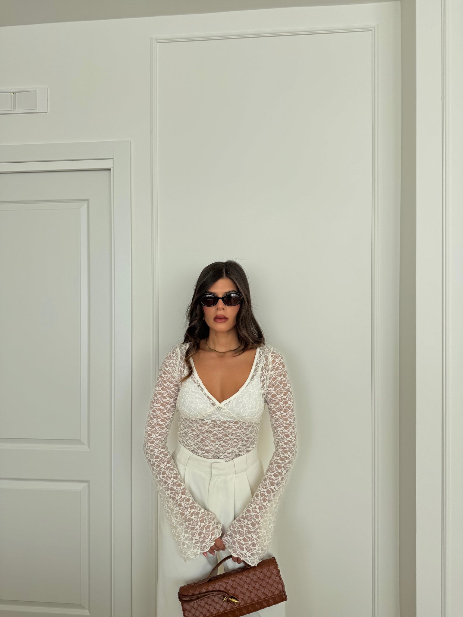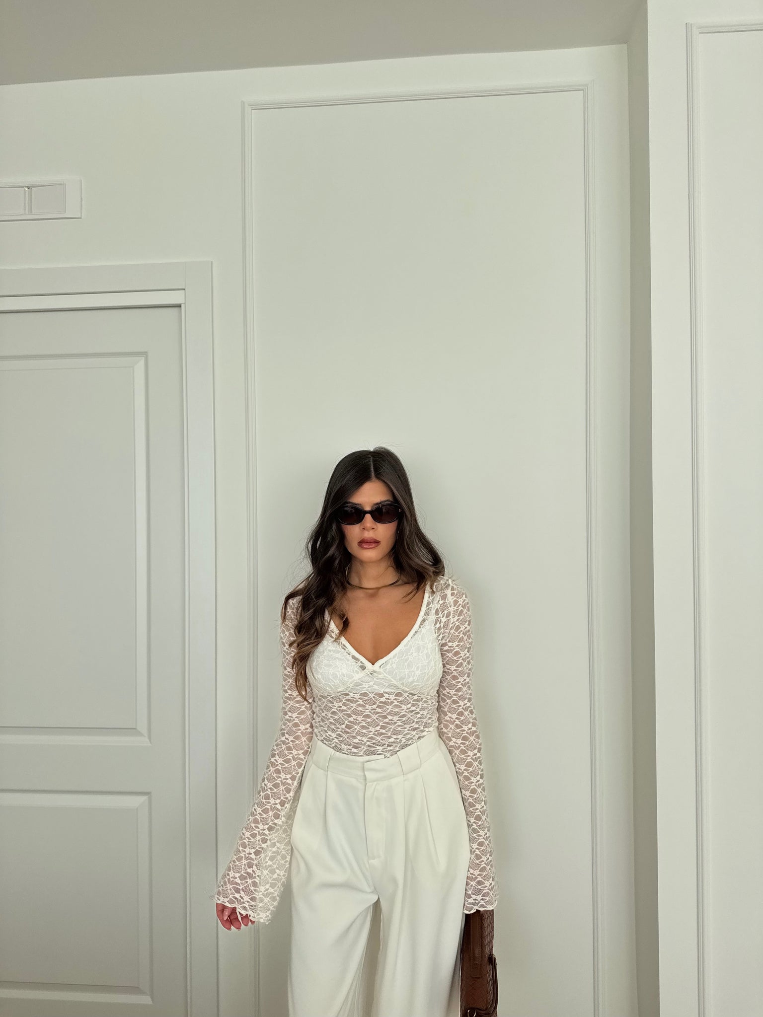 Maglia in pizzo con manica con voilant. Francesca indossa tg S.