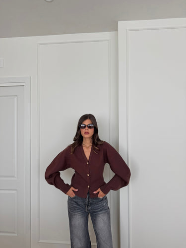 CARDIGAN IN MAGLIA LINDA MARRONE