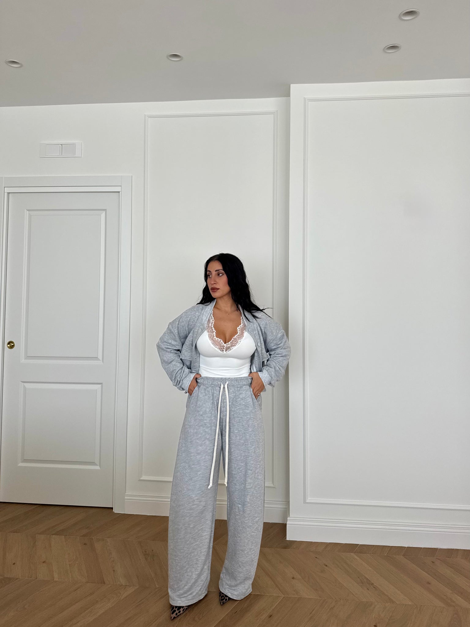 Pantaloni in tuta garzati, modello Balloon, con elastico e laccio in vita.