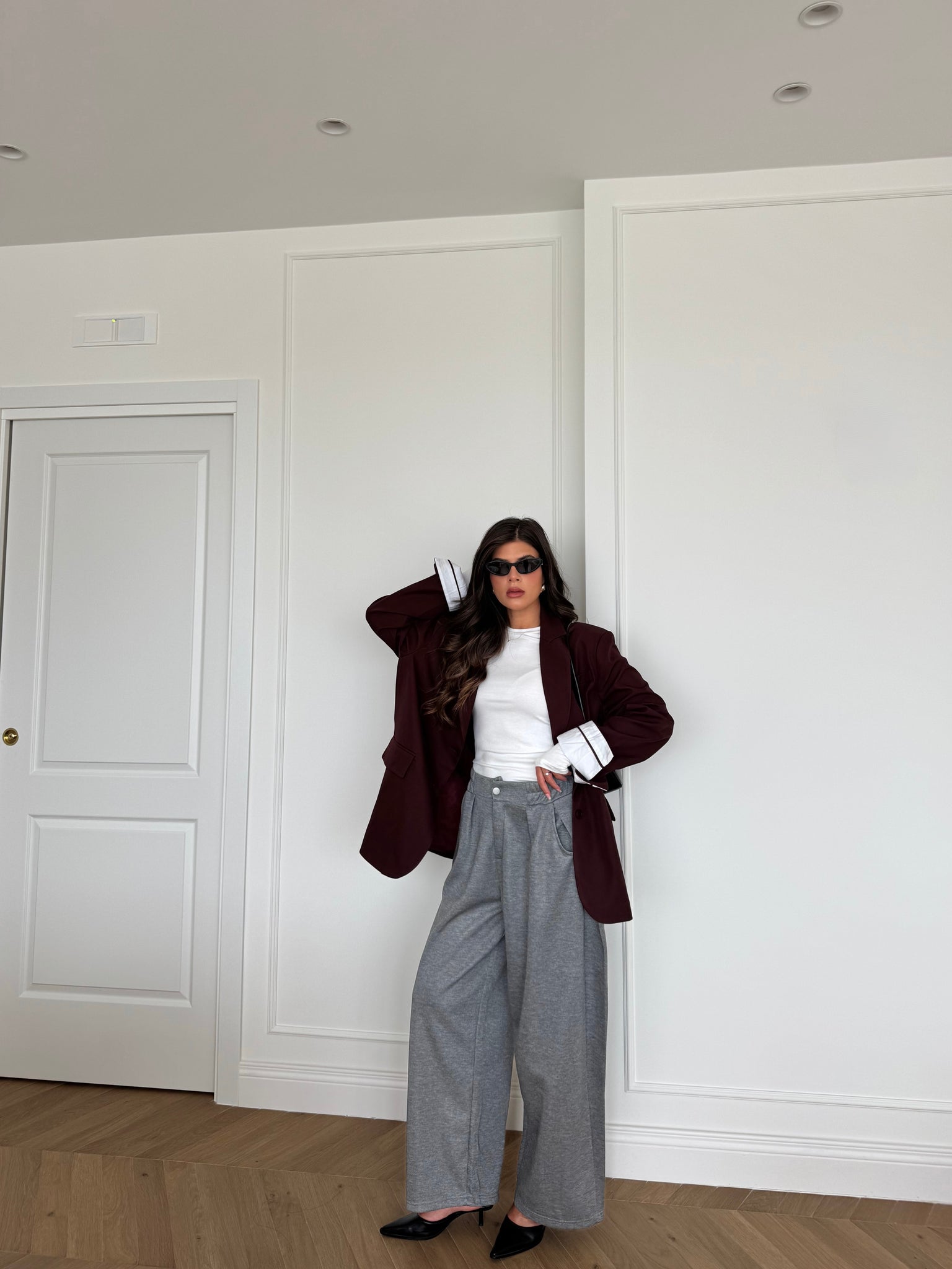 Pantaloni in tuta con elastico sul retro. Chiusura con bottone e zip. Francesca è alta 1,68cm indossa tg L/XL