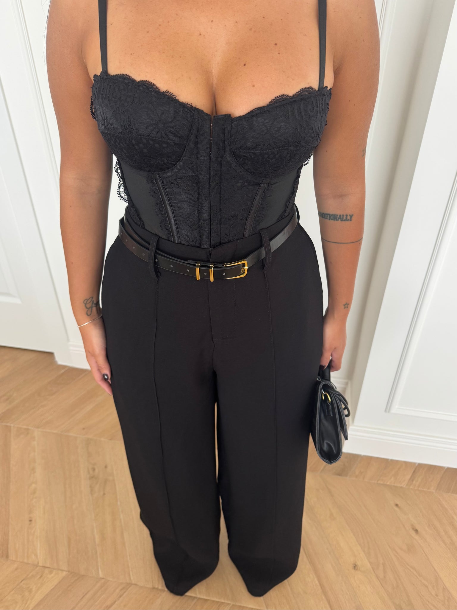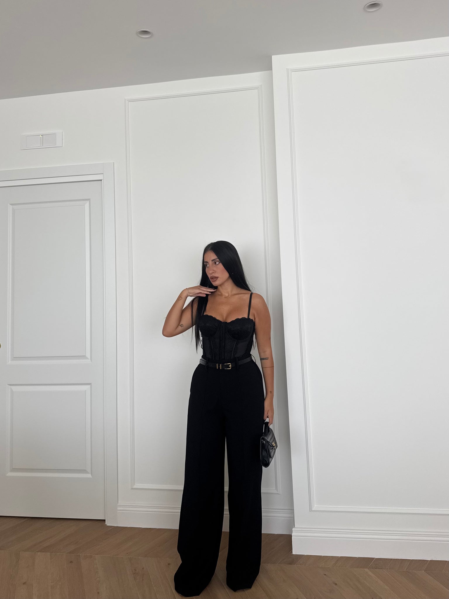 Pantaloni vita alta con cintura. Con elastico sul retro. Martina indossa tg S/M è alta 1,57cm