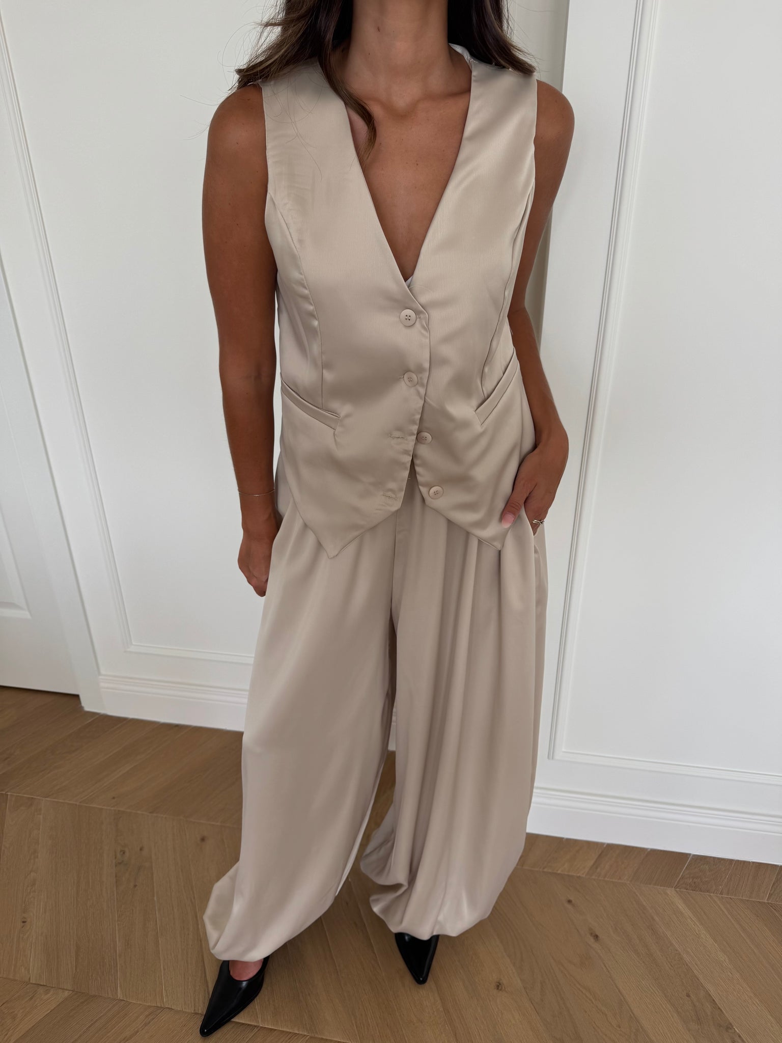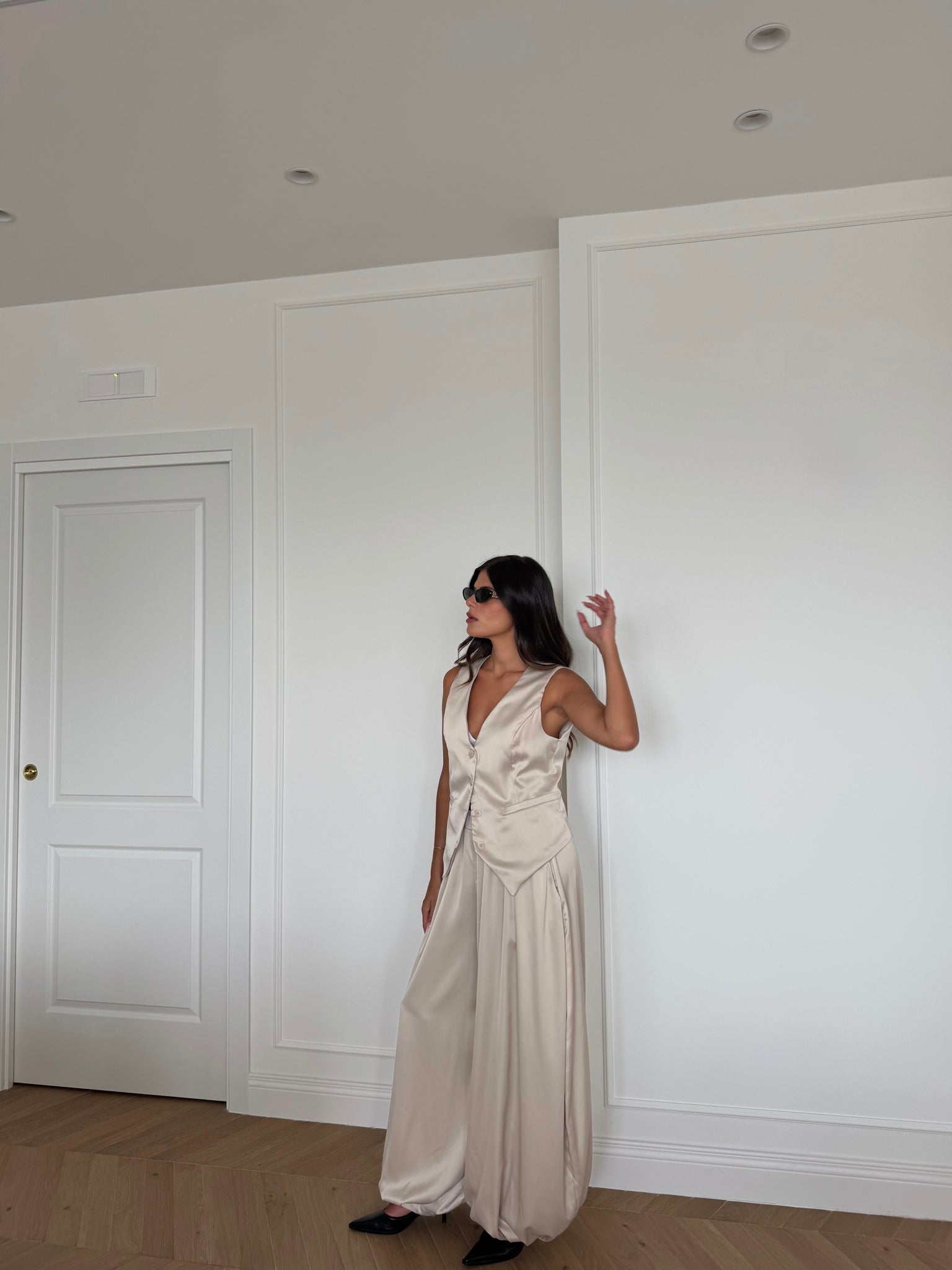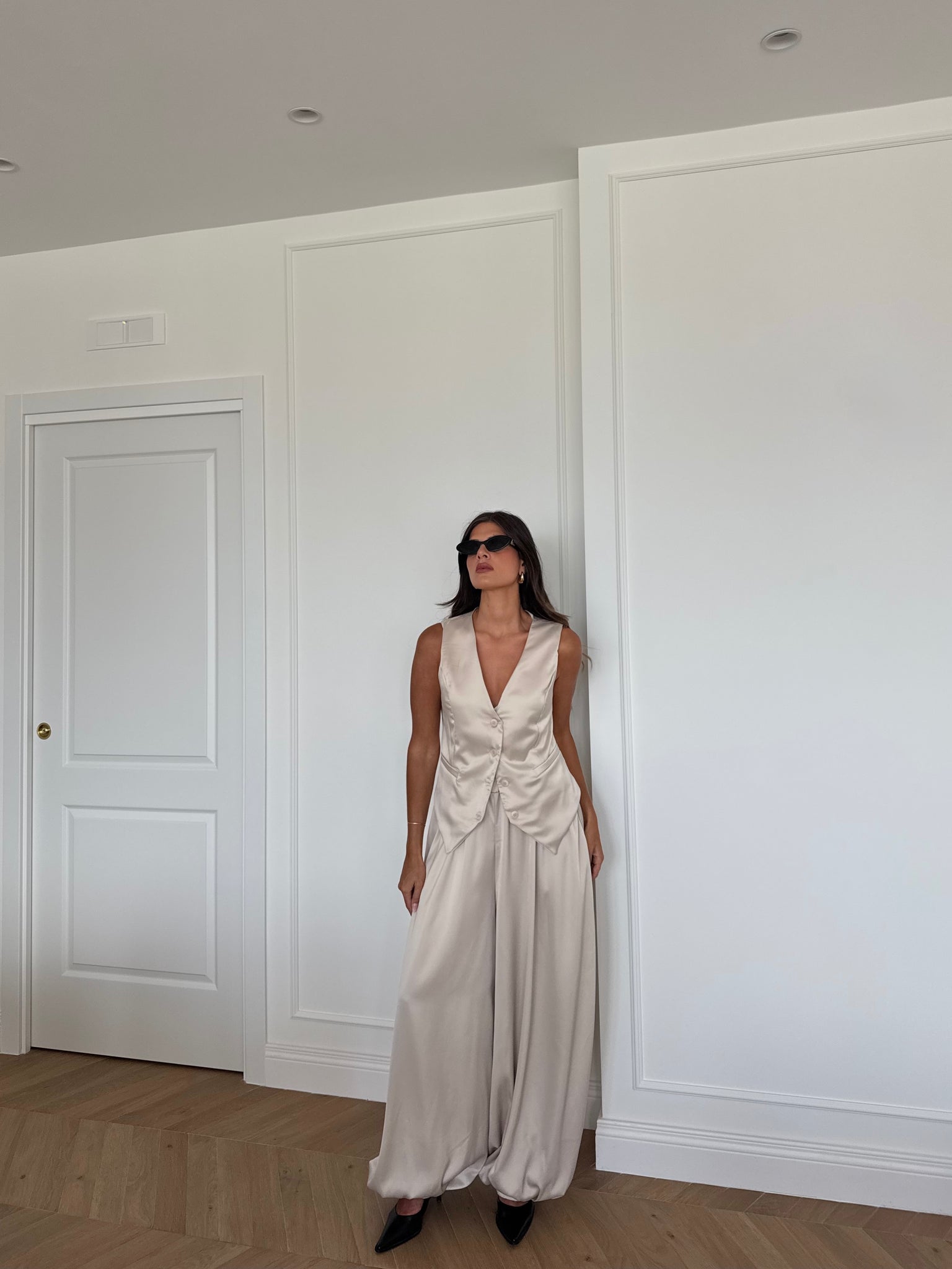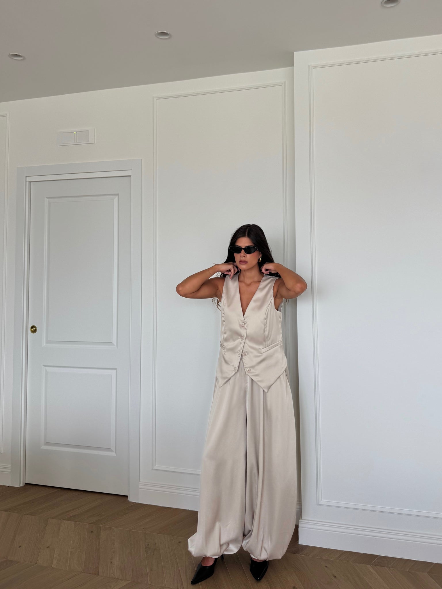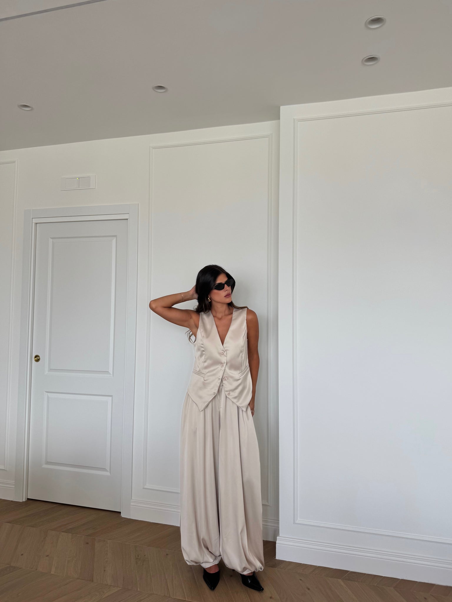 Pantaloni balloon con elastico in vita. Francesca è alta 1,68cm