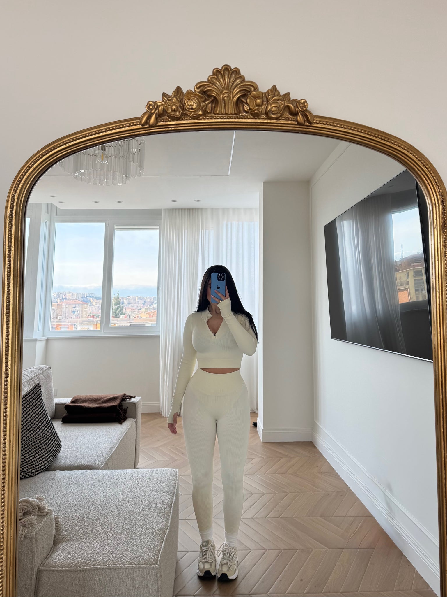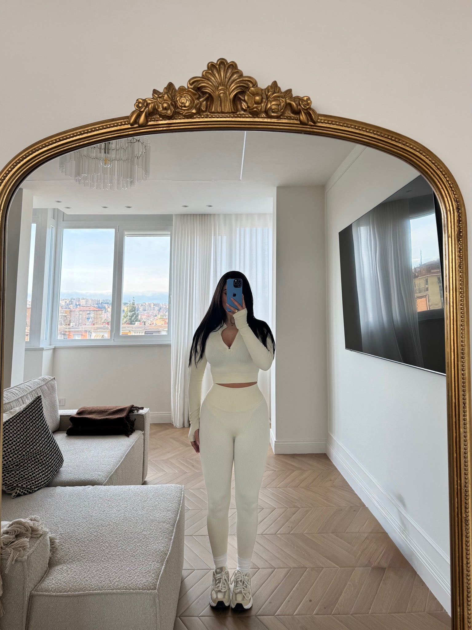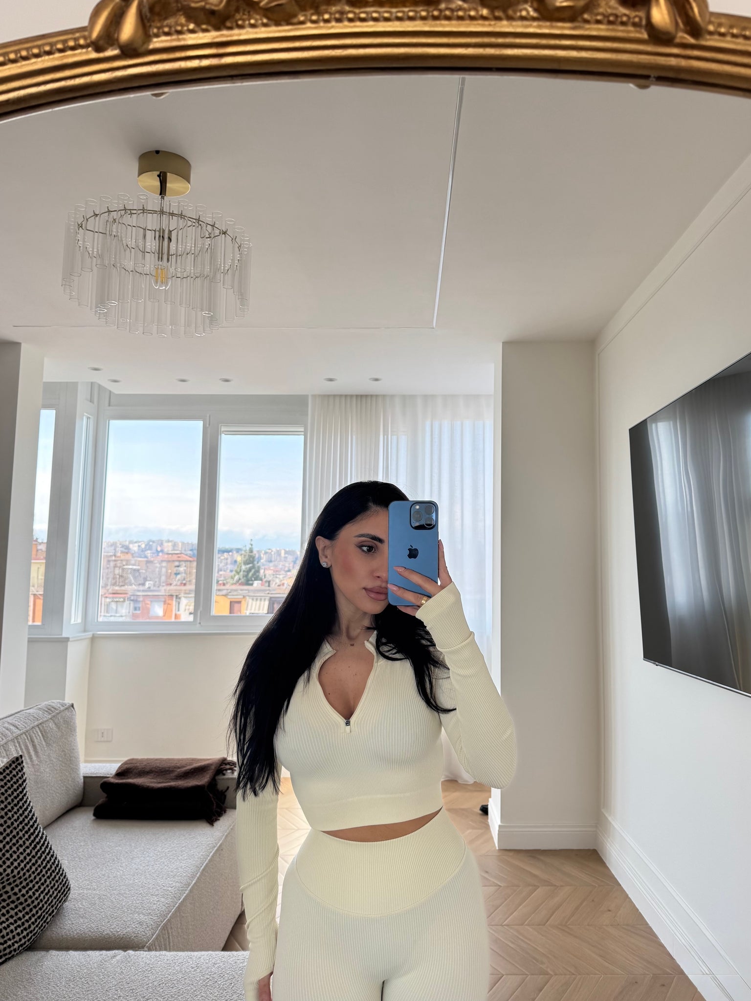 set composto da maglia maniche lunghe con manica a guanto e zip anteriore. Leggings vita alta con arriccio sul retro. COMPOSIZIONE : 65% NYLON 25% POLIESTERE 10% ELASTANE