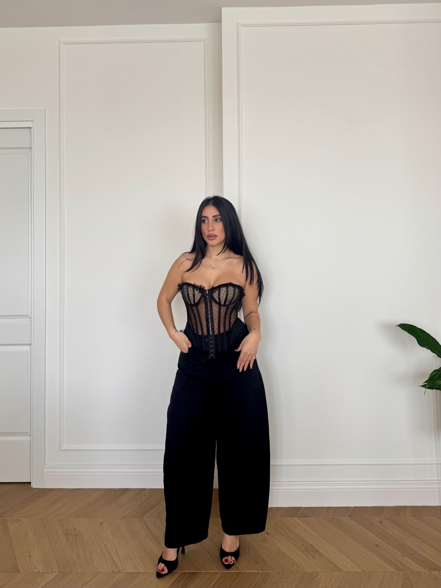 Jeans modello balloon. Martina indossa S/M.COMPOSIZIONE :100% COTONE