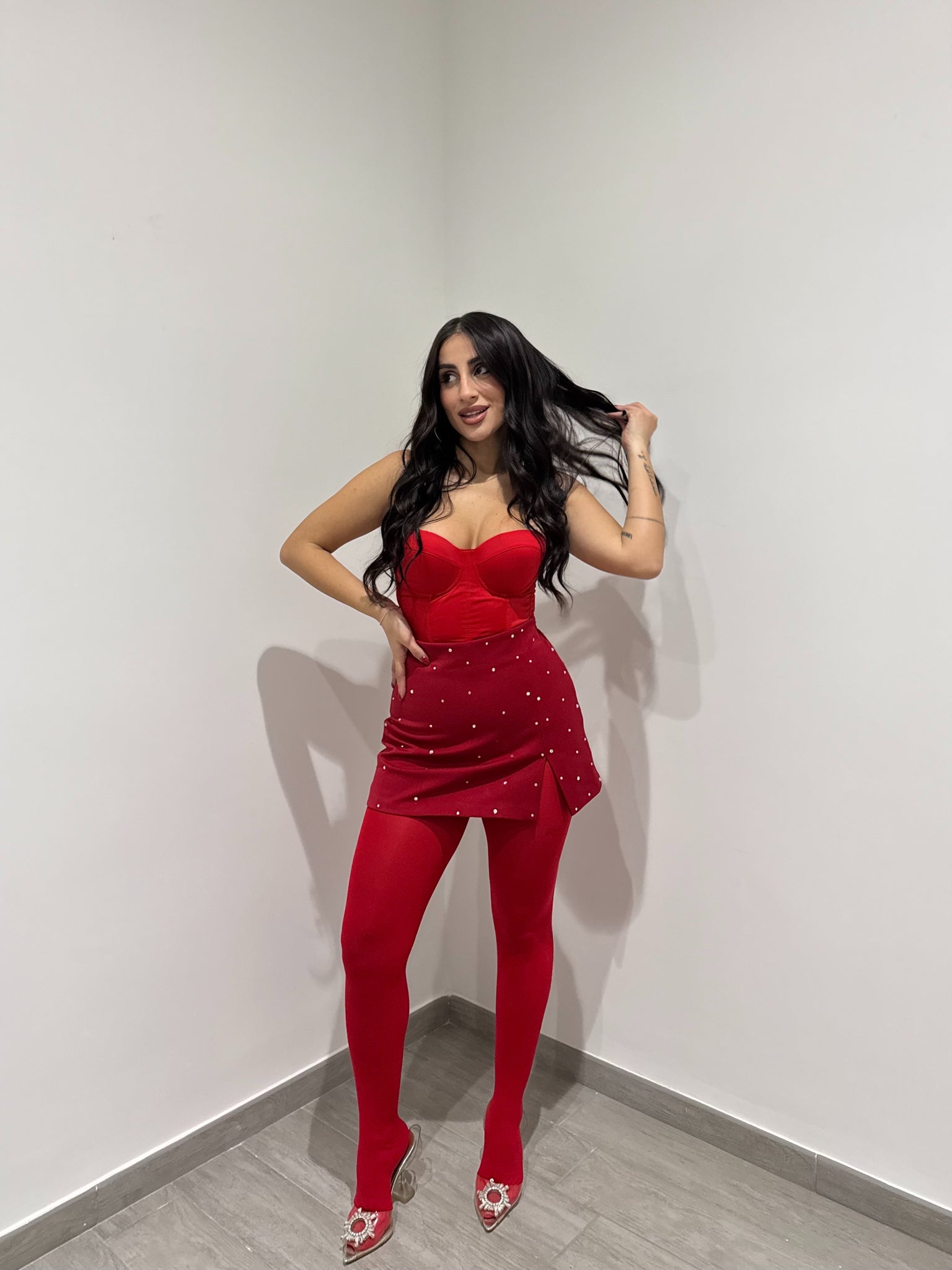 • Carica l'immagine nel visualizzatore di Gallery, PANTAGONNA STRASS LUMINA ROSSO