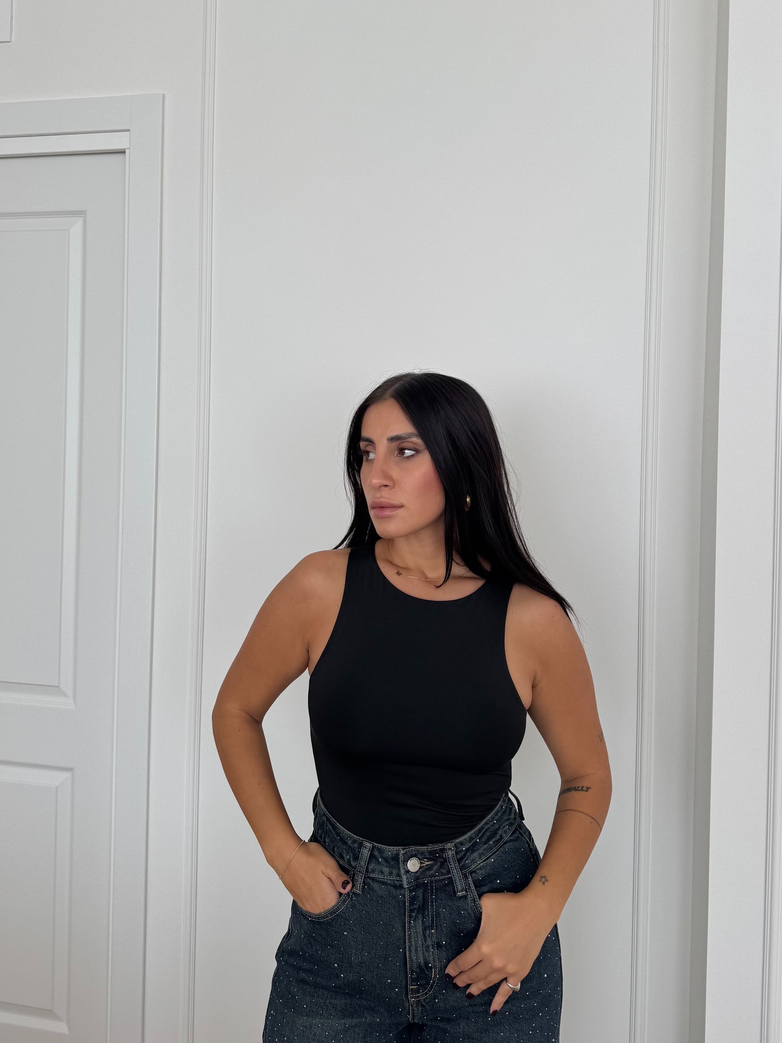 Body con scollo halter. Martina indossa tg M.